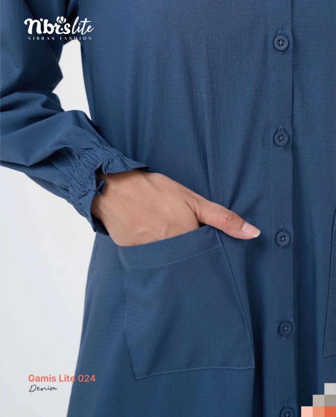 Gamis LITE 024 menggunakan bahan Moshi Square yang ringan dipadukan dengan Shakilla bertekstur halus memberi tampilan rapi yang nyaman dikenakan. Gamis LITE 024 cocok untuk berbagai aktivitas, juga bisa digunakan sebagai outer. Dilengkapi detail lipit kipas disisi bawah, kerah Shanghai, serta lengan frill berkaret menampilkan kesan yang feminin. Bukaan depan busui friendly dan saku depan membuatnya praktis dan nyaman dipakai seharian.